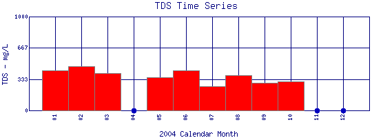 Total Dissolved Solids Time Series for 2004 Boulder Creek at 107th St |
