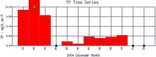 Total Phosphate Time Series for 2004 Boulder Creek at 107th St |
