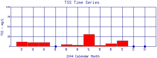 Total Suspended Solids Time Series for 2004 Boulder Creek at 107th St |