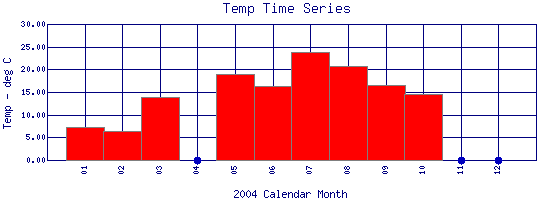 Water Temperature Time Series for 2004 Boulder Creek at 107th St |