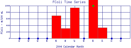 Fecal Coliform Time Series for 2004 Boulder Creek at 61st St. |