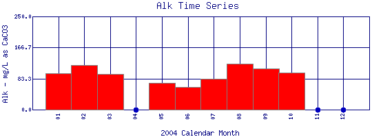 Total Alkalinity Time Series for 2004 Boulder Creek at 95th St |