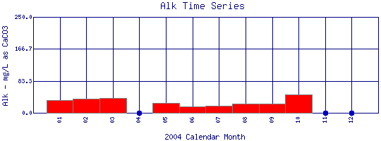 Total Alkalinity Time Series for 2004 Boulder Creek at Eben G. Fine Park |