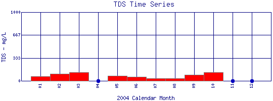 Total Dissolved Solids Time Series for 2004 Boulder Creek at Eben G. Fine Park |