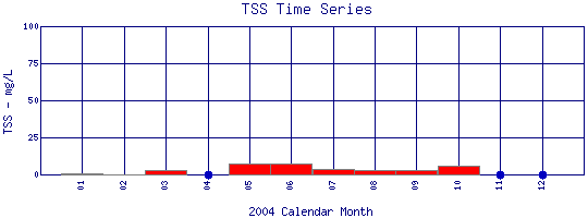 Total Suspended Solids Time Series for 2004 Boulder Creek at Eben G. Fine Park |
