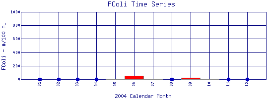 is found in the intestinal tracts of mammals. High concentrations of the bacteria in water or sludge suggest the presence of disease-causing organisms, and may be caused by septic tank failure, poor pasture and animal keeping practices, pet waste, and urban runoff. To measure fecal coliform bacteria, water samples are collected in sterilized containers, filtered, and incubated at a certain temperature. The resulting bacterial colonies that form are counted and recorded as the number of colony producing units per 100 ml of water (CPU/100 ml). Safe drinking water should have fecal coliform counts of 0 CPU/100 ml. For safe swimming, concentrations less than 200 CPU/100 ml is desirable, and for boating, less than 1000 CPU/100 ml is desirable. However, these standards may vary at the local, state, and federal level. |