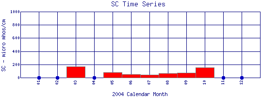 Specific Conductance Time Series for 2004 Boulder Creek at Orodell |