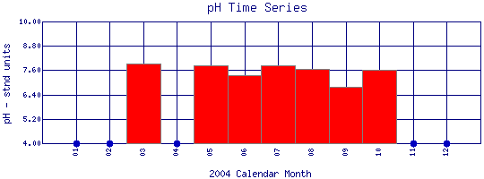 pH Time Series for 2004 Boulder Creek at Orodell |