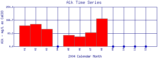 Total Alkalinity Time Series for 2004 Boulder Creek Above Coal Creek |