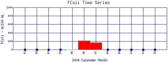 Fecal Coliform Time Series for 2004 Boulder Creek Above Coal Creek |