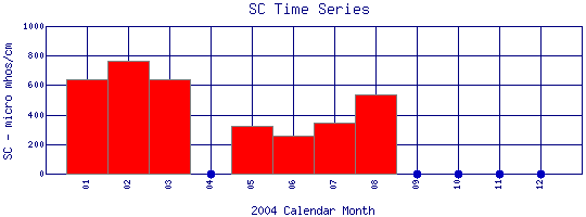 Specific Conductance Time Series for 2004 Boulder Creek Above Coal Creek |