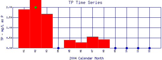 Total Phosphate Time Series for 2004 Boulder Creek Above Coal Creek |