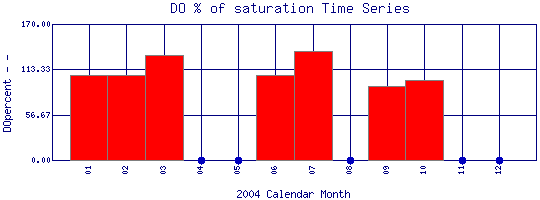 DO Percent of Saturation Time Series for 2004 Boulder Creek above Dry Creek |