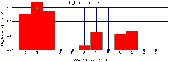 Ortho-phosphate Time Series for 2004 Boulder Creek above Dry Creek |