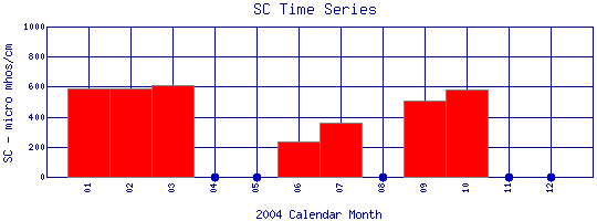 Specific Conductance Time Series for 2004 Boulder Creek above Dry Creek |