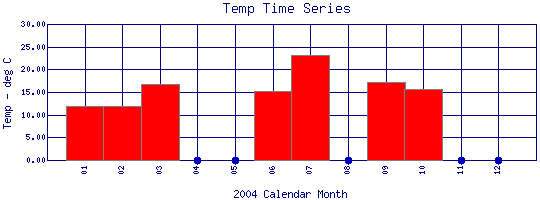 Water Temperature Time Series for 2004 Boulder Creek above Dry Creek |