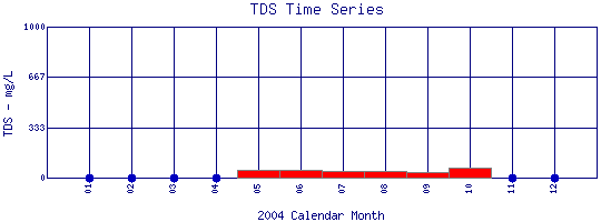 Total Dissolved Solids Time Series for 2004 Middle Boulder Creek Above North Boulder Creek Confluence |