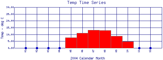 Water Temperature Time Series for 2004 Middle Boulder Creek Above North Boulder Creek Confluence |