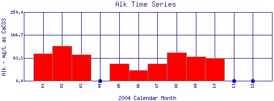 Total Alkalinity Time Series for 2004 Boulder Creek above WW Plant |