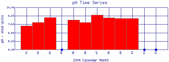 pH Time Series for 2004 Boulder Creek above WW Plant |
