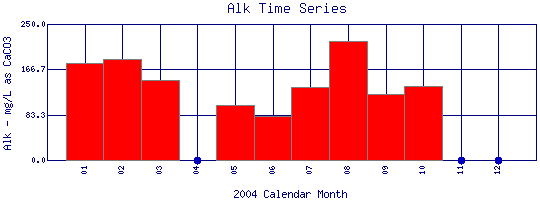 Total Alkalinity Time Series for 2004 Boulder Creek Below Coal Creek |