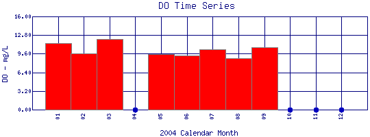 Dissolved Oxygen Time Series for 2004 Boulder Creek Below Coal Creek |