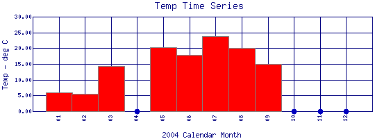 Water Temperature Time Series for 2004 Boulder Creek Below Coal Creek |