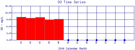 Dissolved Oxygen Time Series for 2004 North Beaver Creek @ Middle Boulder Creek |