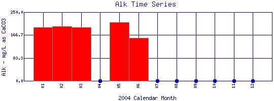 Total Alkalinity Time Series for 2004 Coal Creek Above Boulder Creek Confluence |