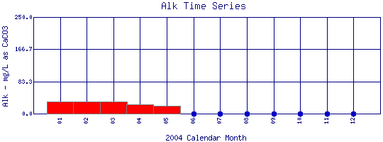 Total Alkalinity Time Series for 2004 Como Creek where it enters Lakewood Res. |