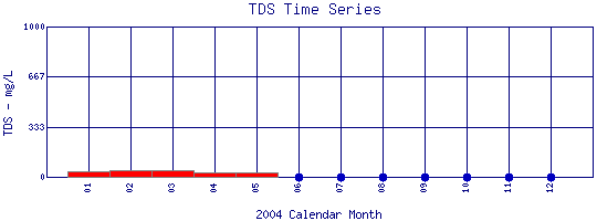 Total Dissolved Solids Time Series for 2004 Middle Boulder Creek at PSCo Weir |