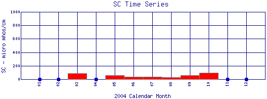 Specific Conductance Time Series for 2004 North Boulder Creek at Boulder Falls |