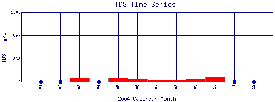 Total Dissolved Solids Time Series for 2004 North Boulder Creek at Boulder Falls |
