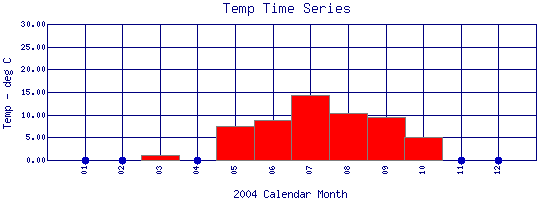 Water Temperature Time Series for 2004 North Boulder Creek at Boulder Falls |