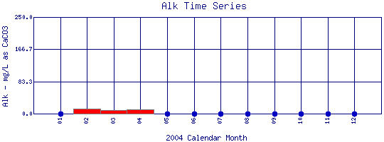 Total Alkalinity Time Series for 2004 Silver Lake Pipe outfall in Lakewood Reservoir |