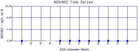 Nitrate + Nitrite Time Series for 2004 Silver Lake Pipe outfall in Lakewood Reservoir |