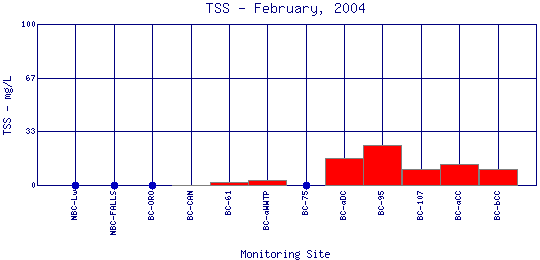 Longitudinal Total Suspended Solids Profiles for February, 2004
