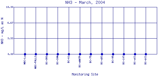The above map indicates water quality monitoring sites. To view data at a specific site select it from the map with the mouse.