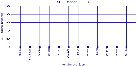 Specific Conductance is a measure of how well water can pass an electrical current. It is an indirect measure of the presence of inorganic dissolved solids, such as chloride, nitrate, sulfate, phosphate, sodium, magnesium, calcium, and iron. These substances conduct electricity because they are negatively or positively charged when dissolved in water. The concentration of dissolved solids, or the conductivity, is affected by the bedrock and soil in the watershed. It is also affected by human influences. For example, agricultural runoff can raise conductivity because of the presence of phosphate and nitrate.