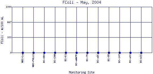 Longitudinal Fecal Coliform Profiles for May, 2004