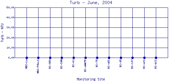 The above map indicates water quality monitoring sites. To view data at a specific site select it from the map with the mouse.
