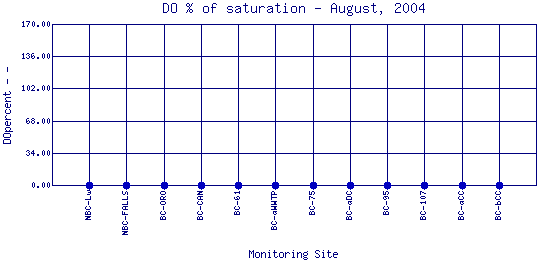 Longitudinal DO Percent of Saturation Profiles for August, 2004