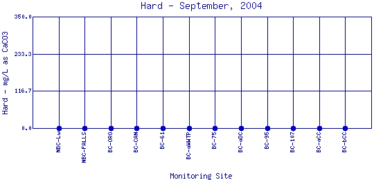 The above map indicates water quality monitoring sites. To view data at a specific site select it from the map with the mouse.