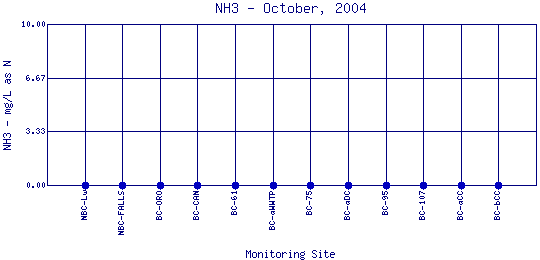 The above map indicates water quality monitoring sites. To view data at a specific site select it from the map with the mouse.