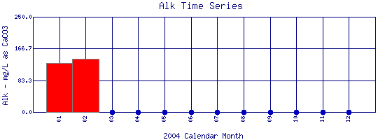 Total Alkalinity Time Series for 2004 Boulder Creek at 107th St |