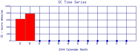 Specific Conductance Time Series for 2004 Boulder Creek at 95th St |