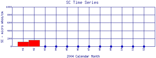 Specific Conductance Time Series for 2004 Boulder Creek at Eben G. Fine Park |