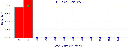 Total Phosphate Time Series for 2004 Boulder Creek Above Coal Creek |
