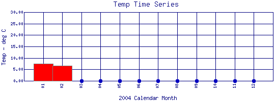 Water Temperature Time Series for 2004 Boulder Creek Above Coal Creek |