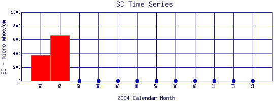 Specific Conductance Time Series for 2004 Boulder Creek above WW Plant |